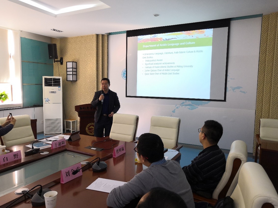 随后,西安外国语大学东方语言文化学院唐雪梅副院长向大家介绍了阿拉伯语专业的基本情况,对北京大学代表团表示热烈欢迎。