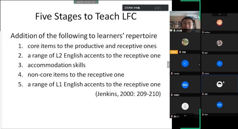 许教授的讲座生动、幽默,对不同口音的英语模仿惟妙惟肖,所讲授的内容深入浅出,结合理论与实践带领师生深入思考英语教学的实践,引发了在线听众的热烈讨论。会后,大家都表示获益匪浅。此次讲座不仅拓宽了英语语音教学的研究视角,也为英语通用语(English as a Lingua Franca)背景下的英语教学实践拓展了新的空间。