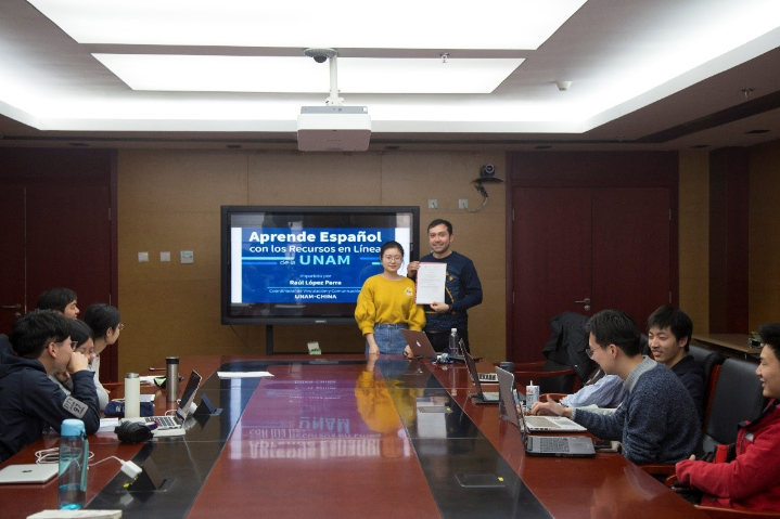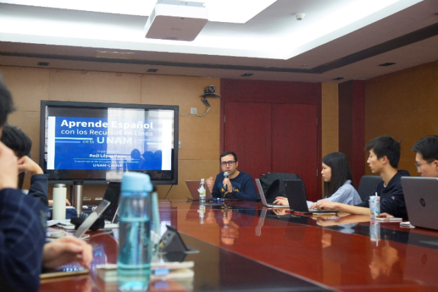 2018年3月24日,应平博官方网站,平博pingbo(中国)西葡语系、北京大学西班牙语中心邀请,墨西哥国立自治大学——北京外国语大学墨西哥研究中心来到平博官方网站,平博pingbo(中国)新楼,为北大西班牙语专业和国发院以及人大、北外的同学们讲解了如何“利用墨西哥国立自治大学(UNAM)在线网课资源学习西班牙语”,现场气氛活跃,同学们收获颇多。