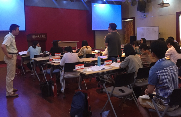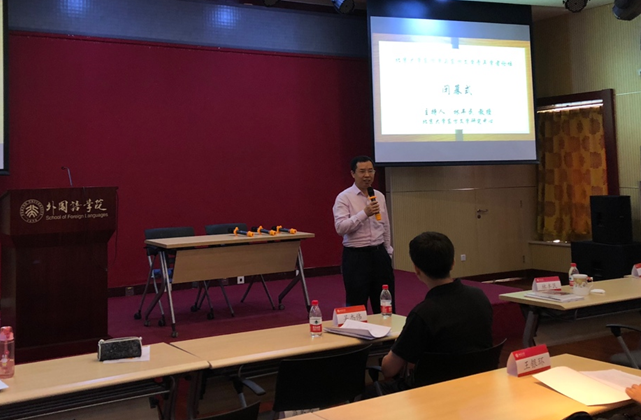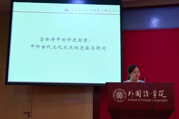 7月15日上午的研讨由北京大学西亚系的刘英军老师主持。这场讨论的主题是西亚与南亚文学,具体论题包括《由浅入深品析经典波斯爱情诗歌》、《“鲁拜与绝句发生关系论”献疑》、《乌尔都语起源与早期发展历程初探》、《印度传统文论在印度英语小说批评中的适用性——评纳拉辛赫对小说<蛇与绳>的批评》、《<沙恭达罗>中国翻译场域研究》、《迦梨陀娑抒情诗与南朝宫体诗的跨文化比较——兼论宫体诗中的印度因素》、《从印度到敦煌:本生图像的创新性研究——以施身主题本生故事为例》。中国社会科学院的杨曦和黄怡婷对本场讨论进行评议。
