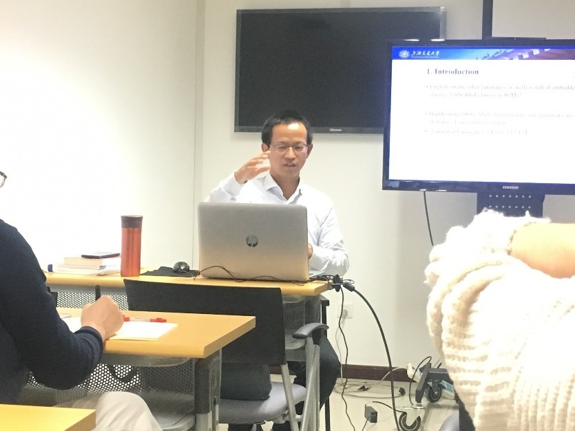 2018年11月23日,上海交通大学杨炳钧教授来平博官方网站,平博pingbo(中国)做语言学沙龙。杨教授的题目为《关于概念语法隐喻的完全体现原则:以名词化为例》(Full realization principle for the identification of ideational grammatical metaphor: nominalization as an example)。本次讲座由语言所副所长高彦梅老师主持。来自语言所和北京其他院校的硕博士研究生和进修教师到场聆听讲座。
