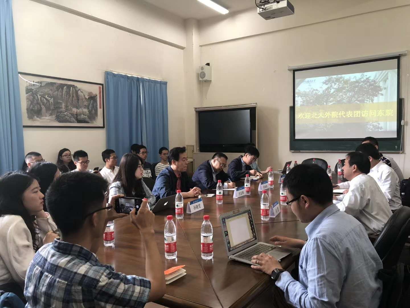 座谈期间,程彤教授首先介绍了上外东方语学院的专业构成、教学科研方向和人才培养情况,强调北大与上外之间应当加强交流,秉持大胆假设、小心求证的理念。付志明教授指出两校间的交流多集中于老师之间,学生之间的交流较少,未来应大力发展青年学生之间的学术、人际往来。吴冰冰副教授阐述了区域国别研究与学术研究的区别,并鼓励研究生同学多读书、深入对象国开展实践、尽快确定研究方向,同时提高外语特别是非通用语种的能力。座谈期间,双方就每年将举行北大-上外中东研究学术论坛等事宜达成合作共识,两校学生也就自己感兴趣的问题进行了深入的交流和讨论。