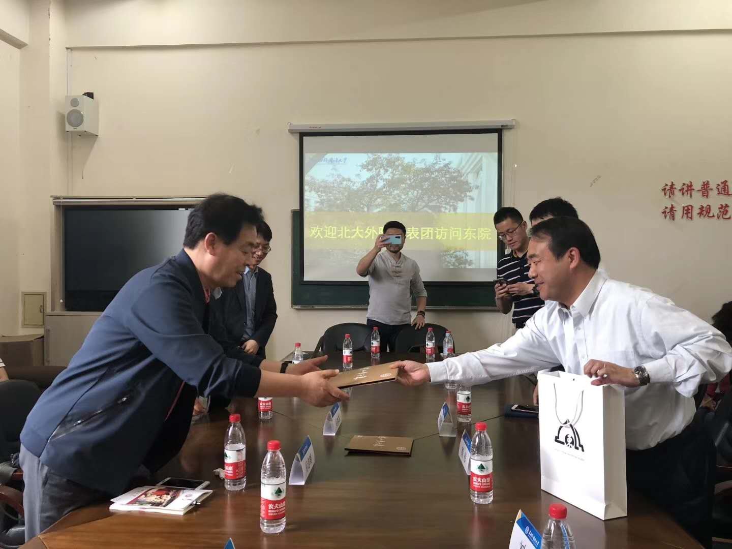 座谈期间,付志明教授首先对丝路所的邀请表示感谢,并向丝路所师生介绍北大阿语系代表团的情况。马丽蓉教授向北大代表团介绍丝路所团队所取得的研究成果,表示北大阿语系和上外之间有传统的友谊和深厚的合作基础,双方应该在《新丝路学刊》、丝路学青年论坛和人才培养等多个领域进行深度、务实的合作。吴冰冰副教授表示,这次协议的签署确立了双方机制化、战略性的合作框架,对于双方单位的合作和青年人才的培养都有重大的意义。丝路战略研究所杨阳副教授、闵捷助理研究员、张宁助理研究员、王畅博士也就双方合作的领域与前景发表了自己的观点。座谈期间,北大阿语系代表团成员与上外丝路所师生进行了友好、深入的交流。(文/蒋婧、张若枫)